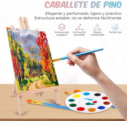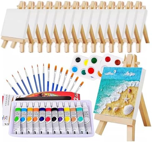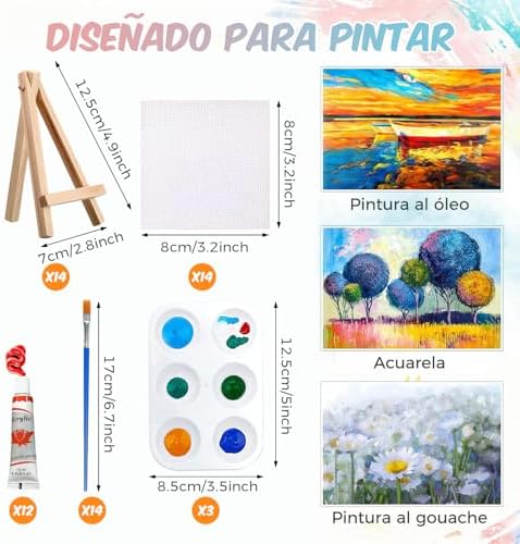 14 Mini Lienzos para Pintar y Bastidores para Pintar con Caballete de Pintura, J