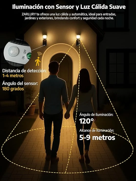 2 Piezas Lámparas Solares Plegables para Pared, Sensor de Movimiento, ZARLURY