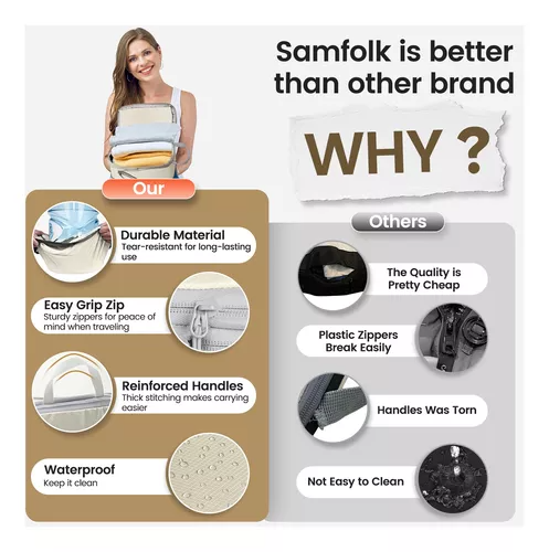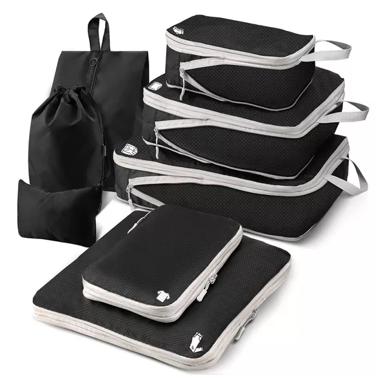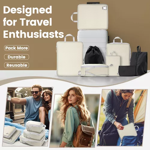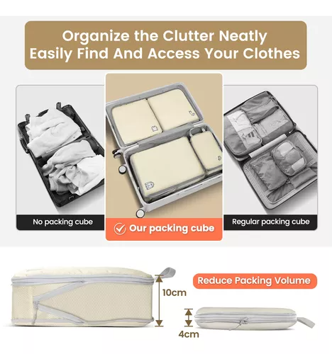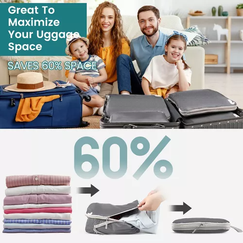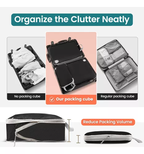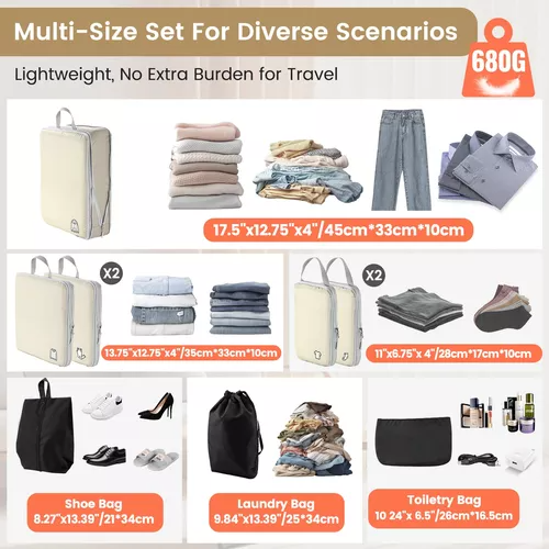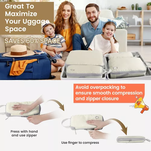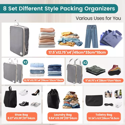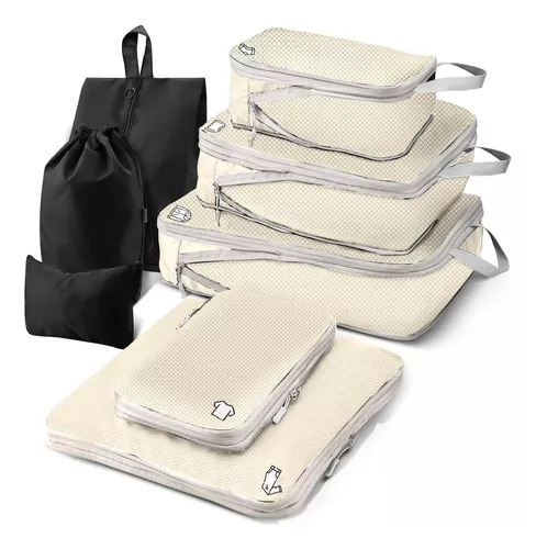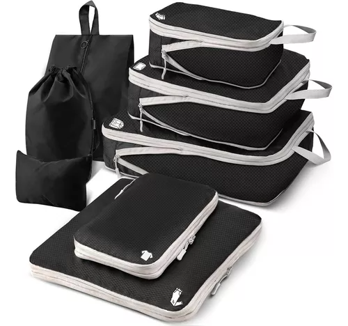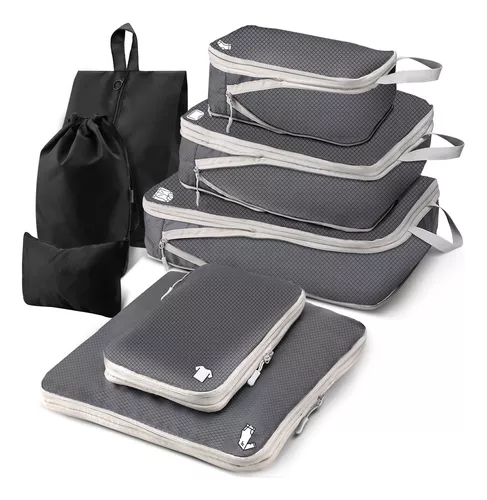Mantener todo organizado: decir adiós al desorden de maletas con 8 juegos de compresión de embalaje cub! Mantenga su ropa cuidadosamente organizada en cubde compresión separados para un acceso rápido, y no más hurgando a través de pilas de ropa. En un viaje a la isla de 5 días, con la compra de recuerdos en exceso que mi equipaje no podía llevar, la gran bolsa de compresión de viaje mantuvo mi ropa limpia e hizo mi viaje más fácil.