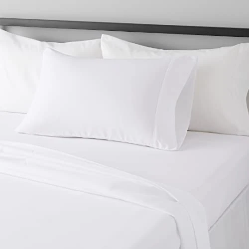 Amazon Basics - Juego de sábanas de 3 piezas de microfibra transpirable y ligera, supersuave, fácil cuidado, sin arrugas, con bolsillos de 35.5 cm de profundidad, individual, blanco brillante, liso