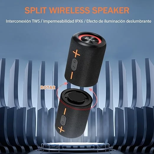 Bocina Bluetooth Portátil 2 en 1, Altavoz Divisible Impermeable con Sonido Estéreo de 20W, 24H de Reproducción