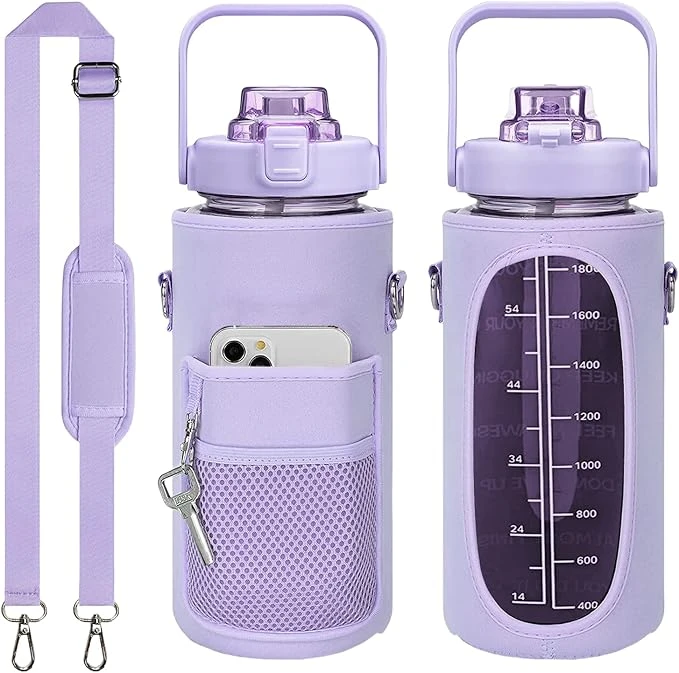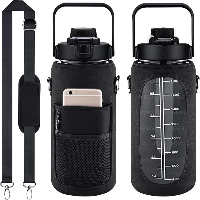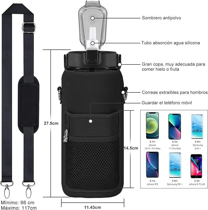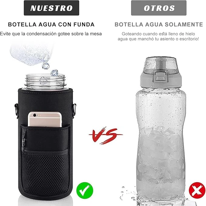 Botella Agua con Funda Protectora, Botella de Agua 2 Litros con Pajita
