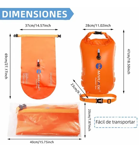 Burbujas de natación extragrandes de 20 litros. Mayor espacio, mayor aire permitido y más seguro. La boya de natación con una bolsa impermeable separada en el exterior del flotador. Pon tus pertenencias personales en el interior y mantenlas secas durante largos nados.