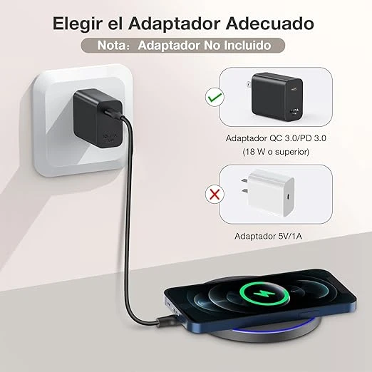 Cargador Inalámbrico 15W, Wireless Charger Qi con Cable 3A Compatible para iPhone, Samsung, Huawei, Xiaomi, Airpods 3rd etc