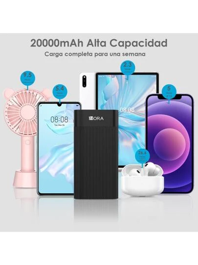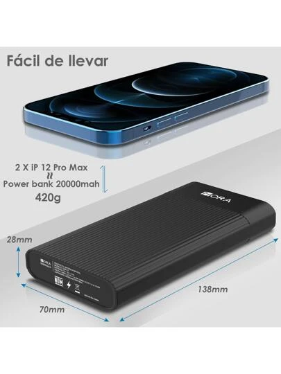 Descripción Especificaciones técnicas: - Capacidad MAX 20000mAh/74WH. - Dimensiones: 138 mm x 70 mm x 28 mm ¿Cuánto Debo cargar la batería antes de usarla? Los 10000 deben cargarse durante aproximadamente 6-7 horas de forma continua. Las 20.000 deben cargarse durante aproximadamente 12 horas continuas. Los 30000 deben cargarlo durante aproximadamente un día completo.