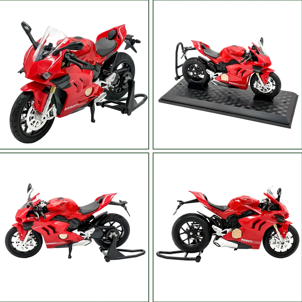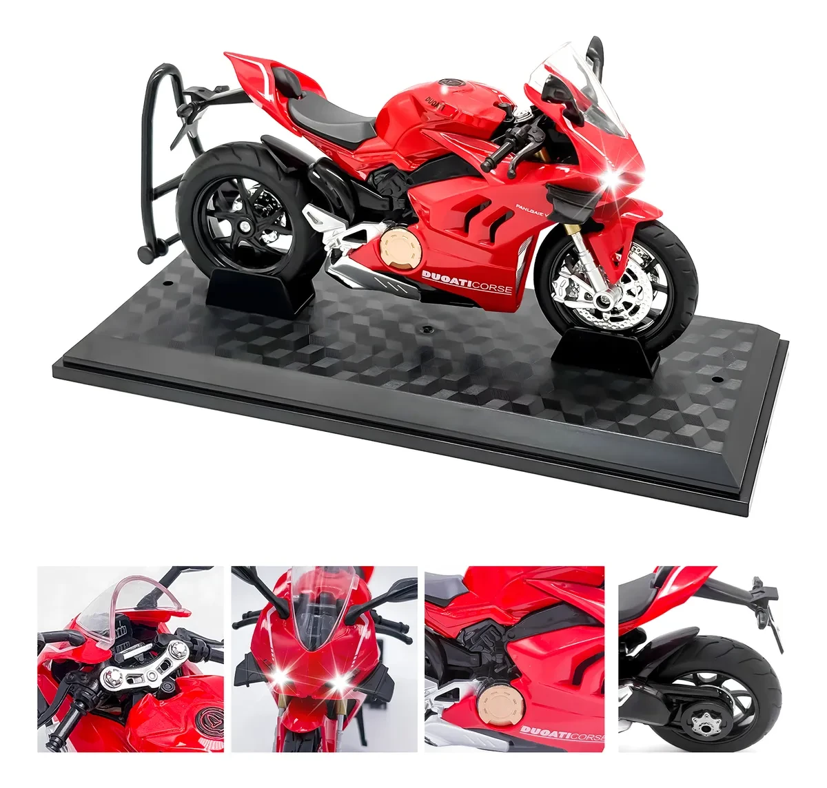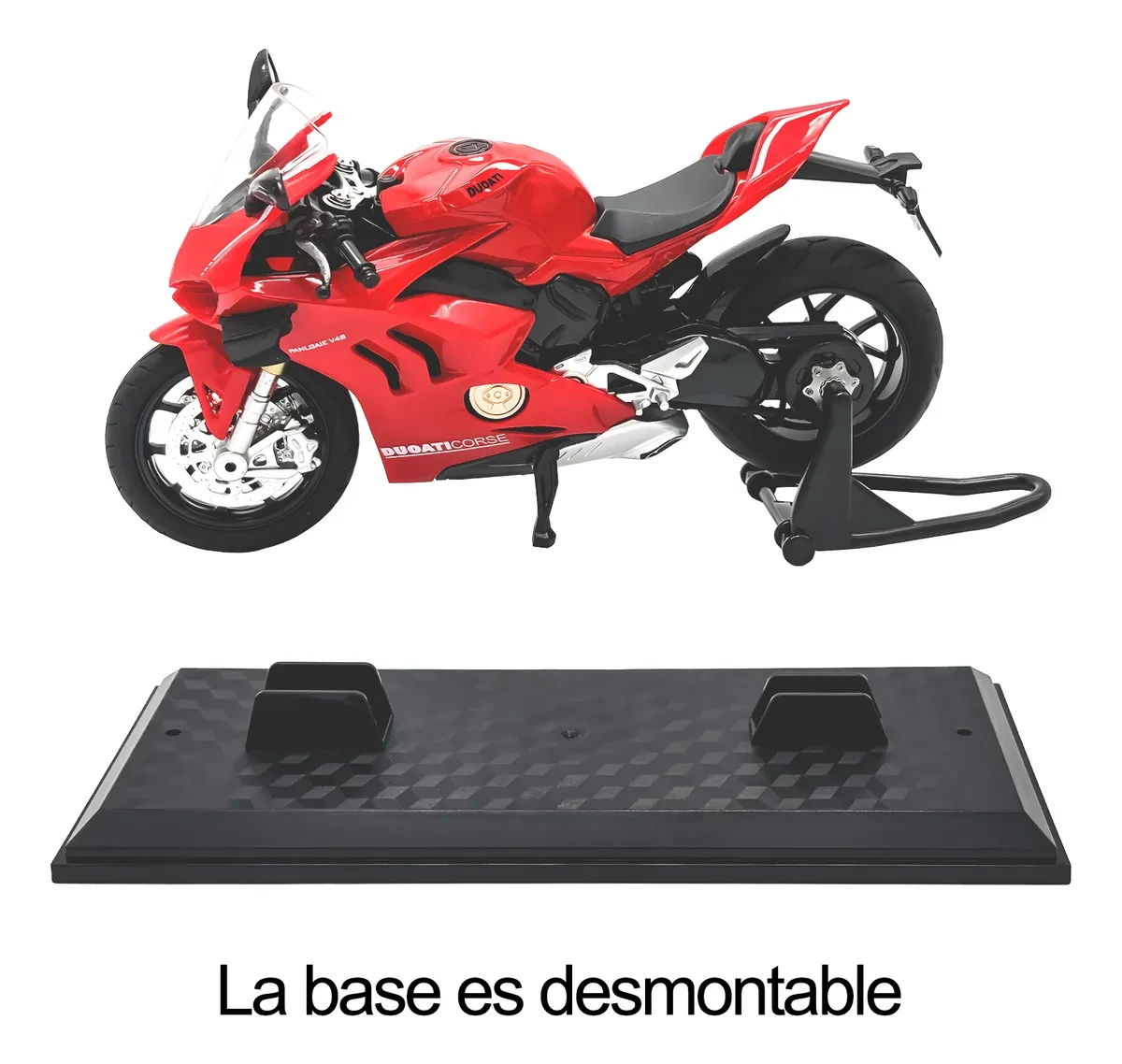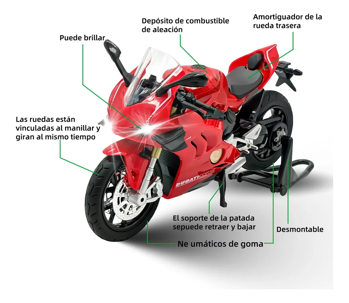 La Ducati Panigale V4s Metal Motocicleta Con Luz Y Sonido 1:12 es el modelo perfecto para los apasionados de las motocicletas y los coleccionistas. Fabricada en metal y plástico, esta fiel reproducción captura la esencia de la icónica marca Ducati, reflejando tanto su diseño elegante como su rendimiento de alto nivel. Con una escala de 1:12, este modelo es ideal para niños a partir de 3 años y para adultos que deseen añadir una pieza espectacular a su colección. La moto cuenta con características de luz y sonido que la hacen aún más realista, brindando una experiencia inmersiva para quienes la maniobran. El modelo Panigale V4 S, lanzado en 2022, es parte de una serie que destaca por su atención al detalle y calidad de fabricación. Aunque no tiene apertura de puertas, su diseño acabado y su detalle hacen que sea un objeto de admiración tanto en estanterías como en vitrinas. Este producto es coleccionable y se presenta sin fecha de vencimiento, lo que permite disfrutar de su belleza a lo largo del tiempo. La Ducati Panigale V4s es más que un simple juguete, es una pieza de arte que representa la pasión por el motociclismo y la ingeniería de calidad. |