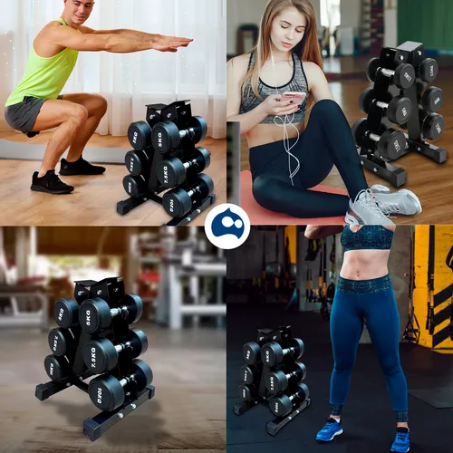 [SOPORTE COMPACTO QUE AHORRA ESPACIO] Invierte en este soporte para pesas para mantener tus pesas organizadas, fácilmente accesibles y almacenadas de manera segura, ya sea que seas un aficionado al fitness o necesites equipar tu lugar de trabajo con una opción práctica de ejercicio, este estante es esencial, puede contener 3 pares de pesas en un diseño de doble cara de fácil acceso