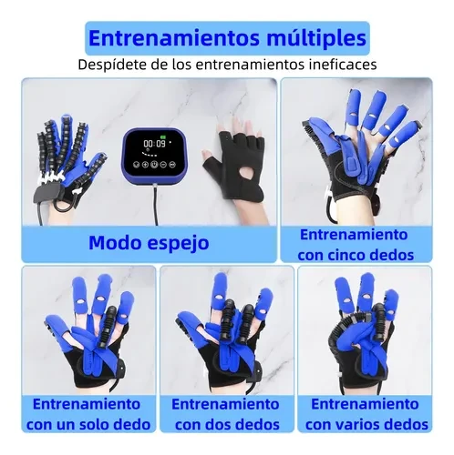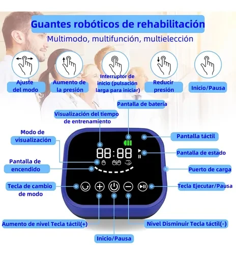 Estimado cliente, por favor, antes de realizar un pedido, confirme cuidadosamente la elección de la talla y de la mano izquierda y derecha.os. ¡Muchas gracias! Contenido del paquete: Guantes de entrenamiento. Guantes de espejo. Facilitador. Pelota de entrenamiento. Cable de carga. Instrucciones de uso. Caja elegante. ============================== Descripción: 1. Fácil de usar: El dispositivo de rehabilitación de golpe de mano es pequeño y ligero. Los pacientes pueden utilizarlo en cualquier lugar y en cualquier momento, ya sea en su casa o durante el viaje. Recargable/enchufable disponible. Batería de litio totalmente cargada, tiempo de resistencia alrededor de 80-100 minutos. 2. Función de calefacción mejorada: Favorece la circulación sanguínea, reduce la rigidez de los dedos, alivia las molestias de las manos y acelera el efecto de rehabilitación. 3. Pantalla táctil LED de alta definición: Los miembros de la familia pueden ver con mayor claridad y operar con mayor comodidad. Puede comenzar a entrenar con cinco dedos, un solo dedo, un dedo opuesto, varios dedos, imagen de espejo, etc. 4. Interruptor de compuerta independiente: Utilice el interruptor independiente para entrenar segmentos específicos. Cualquier dedo puede doblarse y estirarse libremente. Gire el pomo de la válvula 90 hacia un lado y la válvula se cierra y se abre verticalmente. 5. Actualización de tres motores de bomba de aire: Funcionamiento estable, gran potencia, mayor presión de aire, 9 niveles de fuerza. ============================== Preguntas frecuentes e instrucciones de seguridad: ¿Cuánto tiempo es adecuado para cada uso? Un solo uso no debe ser demasiado largo, se recomienda controlar en 20 minutos. ¿Cómo se ajusta la intensidad del entrenamiento? La fisiología muscular varía de un usuario a otro, con diferentes niveles de recuperación y ejercicio. Por lo tanto, a diferentes niveles de tono muscular corresponden diferentes posturas recomendadas. Consulte las instrucciones para obtener más detalles. ¿Cuáles son las indicaciones para las personas? Niños, adolescentes y ancianos con trastornos de la mano causados por apoplejía, hemorragia cerebral, quemaduras en las manos y parálisis cerebral. ¿Cuáles son las contraindicaciones del uso del robot para la rehabilitación funcional de la mano? Antes del entrenamiento, hay que asegurarse de que la mano que se va a entrenar no está rígida. Si la rigidez requiere masaje manual avanzado y compresas calientes, sólo se puede entrenar hasta que la mano afecte el alcance un estado blando; Por favor, no lo utilice sólo en personas inconscientes o niños; Por favor, no utilice este producto si hay esquinces de mano, traumas, lesiones óseas con condiciones desconocidas, personas con osteoporosis severa, personas con fracturas óseas no tratadas, o personas que necesiten ser frenadas después de levantar y moverse, sin que un profesional haya determinado que son utilizables. |