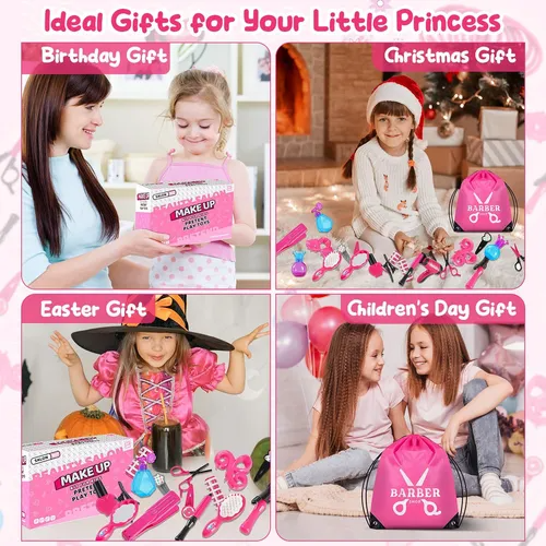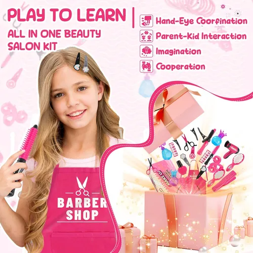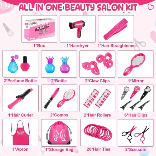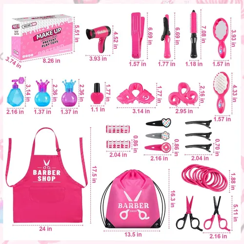 DescripciónJuguetes de peluquería de lujo de 43 piezas: ofrecemos 43 piezas de juegos de salón para niños para pequeños peluqueros, que son exactamente los mismos que los de los salones de belleza profesionales. El juego incluye: 1 * secador de pelo, 1 * plancha de pelo, 1 * espejo, 1 * botella de perfume, 2 * botellas, 2 * pinzas, 6 * pinzas para el cabello, 2 * rulos, 2 * peines, 1 * rizador , 2*tijeras, 20*bandas para el cabello, 1*bolsa de almacenamiento, 1*delantal. Todos los artículos están cuidadosamente empaquetados en una hermosa bolsa de almacenamiento para una fácil organización.; Juego de peluquería realista: el juego de peluquería GZDUCK para niñas pequeñas mide aproximadamente 7 pulgadas, perfecto para que lo sostengan las manos pequeñas. Con nuestro juego de delantales cuidadosamente diseñado, su hijo parecerá un auténtico peluquero. Ya sea peinándose o maquillándose, los niños pueden sumergirse en el arte de la belleza con estos salones de peluquería realistas. Material ABS de alta calidad: el kit de peinado para niñas está hecho de material ABS seguro y de alta calidad, que cumple con las especificaciones estándar de seguridad del consumidor. Es un juego de maquillaje duradero, inodoro, duradero y respetuoso con el medio ambiente, sin bordes ni esquinas afilados que puedan dañar a sus hijos. Todos los accesorios de tocador han sido probados y son seguros para que los usen los niños.; Juguete de salón educativo y divertido: el juego de salón de belleza para niños pequeños es un muy buen juguete de aprendizaje que puede ayudar a los niños a imitar a los adultos para disfrazarse y aprender el conocimiento del salón de belleza de moda. Anímalas a dar rienda suelta a su imaginación y creatividad al explorar el mundo de los peinados y el maquillaje. Puede mejorar la coordinación ojo-mano de los niños, ejercitar el pensamiento, mejorar la imaginación y promover el trabajo en equipo de los niños. Disfruta del juego de peluquería y haz realidad el sueño de la encantadora princesa.; Regalo perfecto para niñas de 3 años en adelante: a sus hijos les encantará diseñar peinados elegantes para ellos, sus hermanos, sus amigos y su familia. Este juego de peluquería de juguete es la mejor opción de regalo de cumpleaños para niñas de 3 años en adelante. Perfecto para juegos de peluquería de niñas, juegos de juguetes de salón de belleza, regalos de fiesta, regalos de cumpleaños, regalos de Navidad, regalos para hijas, regalos para nietas, regalos de viaje y cualquier otra ocasión. Los niños pueden simular escenas reales y disfrutar de la diversión del estilo creativo. Todos nuestros productos estan en inglés SKU 71124066567 |