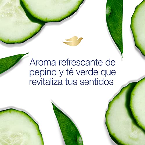 Ingredientes PEPINO Descripción del productoCuida la piel de todo tu cuerpo y revitaliza tus sentidos con el Jabón en Barra Dove Hidratación Fresca Pepino y Té Verde, que humecta profundamente tu piel mientras la limpia generosamente y te energiza con su refrescante aroma a pepino y té verde. El Jabón en Barra Dove Hidratación Fresca contiene 1/4 de crema humectante, por lo que podrás disfrutar de una piel limpia y suave con extrahumectación. A diferencia de los jabones comunes que remueven la humectación natural de nuestra piel junto con las bacterias, este jabón deja tu piel radiante y humectada, con un fresco y delicioso aroma. Nuestro jabón con pH neutro Dove Hidratación Fresca, dermatológicamente recomendado, ayudará a mantener el balance natural de tu piel. Transforma tu experiencia de limpieza dándole a tu piel una mezcla de ingredientes humectantes con los jabones Dove. |