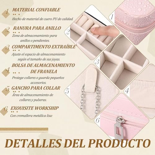 - 【Multifuncional】Con espacios designados para collares, pendientes, anillos, pulseras y compartimentos extraíbles para labiales, relojes y más, este estuche mantendrá tus accesorios organizados y libres de enredos, evitando la frustración de buscar tus joyas.