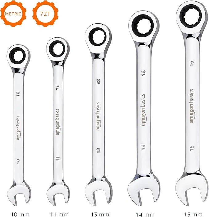 Juego de llaves de trinquete métricas, 5 piezas