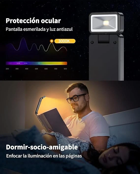 - 【Ligera y Portátil】La lampara para leer es a prueba de golpes y resistente al desgaste, y al mismo tiempo ligera, totalmente plegable, por lo que es muy fácil de llevar. Ya sea que esté de viaje o en casa, será perfecto para su lectura nocturna, libros, revistas, cuentos antes de dormir, periódicos y más. Diseñada para los aficionados a la lectura y los amantes de los libros, la lámpara de lectura para libro multifuncional con luz de libro permite leer como embelesado, incluso en condiciones de poca luz, lo que la convierte en un regalo ideal para niños, estudiantes y amantes de los libros.