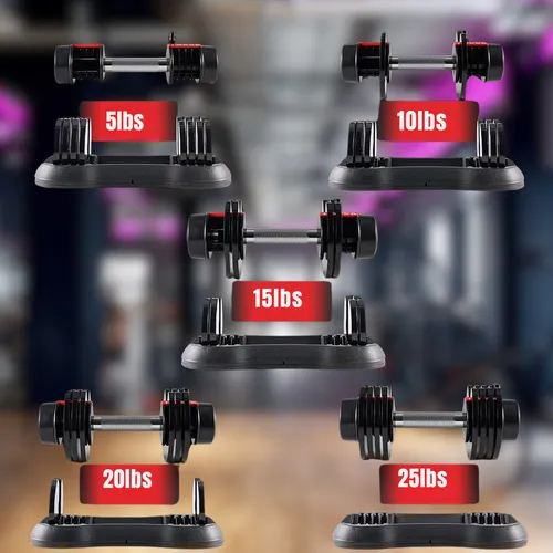 AJUSTE RÁPIDO Y PRECISO: Ajusta fácilmente el peso de tus mancuernas desde 5 lbs hasta 25 lbs en segundos, gracias a un deslizador fácil de usar. Ideal para entrenamientos dinámicos y eficientes en casa.