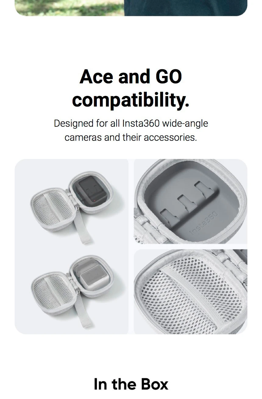 DescripciónFunda para mini cámara Insta360 Para Ace Pro2\Ace Pro\Ace\GO 3S\GO3 Diseñado para cámaras y accesorios Insta360 Ace Pro 2, Insta360 Ace Pro, Insta360 Ace y GO Series. Ligero y cómodo para viajar. Incluye ranura para almacenamiento de tarjetas microSD y un bolsillo de malla para guardar artículos perdidos fácilmente, incluidas baterías y cordones. Durable contra los elementos con material a prueba de salpicaduras y polvo. Compatibilidad Insta360 Ace Pro 2 VAI 3S Insta360 Ace Pro Insta360 Ace |
