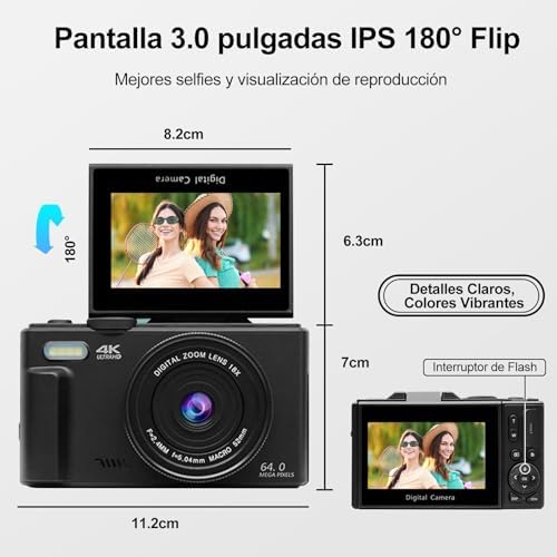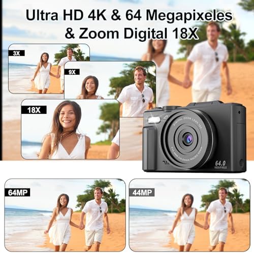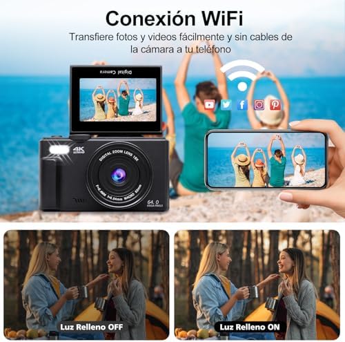 Ourlife Cámara Digital 4K WD08 para Fotografía y Video, 64MP para Grabación Pant