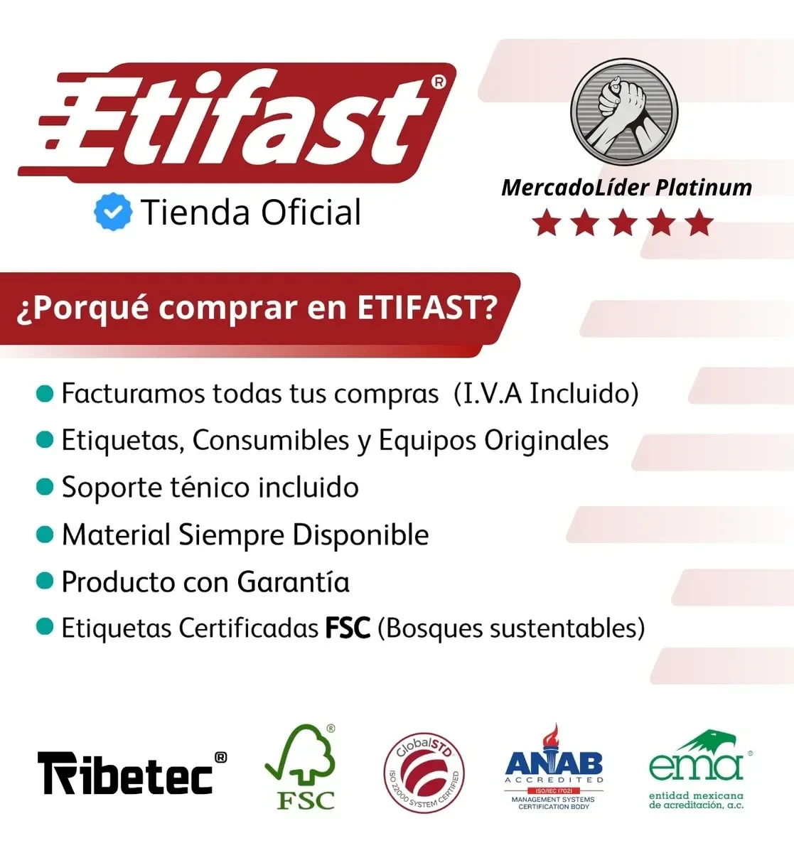 Descripción¡BIENVENIDO A LA TIENDA OFICIAL DE ETIFAST! *SOMOS EMPRESA Y TODAS TUS COMPRAS SE PUEDEN FACTURAR* Etiqueta térmica directa, NO requiere impresión con cinta ribbon (tinta), ya que el calor de los cabezales actúa directamente sobre la etiqueta. - 36 rollos de 500 etiquetas c/u - Total 18,000 etiquetas - Etiqueta 4 x 4 pulgadas - 102 x 102 mm - 10x10 cm - Marca: Ribetec - Centro/Core: 1 pulgadas (25 mm) para impresoras pequeñas o medianas - C1" - 1 etiqueta al paso - NO requiere cinta ribbon para imprimir - Ideal para impresoras de escritorio Ribetec, Zebra, TSC, Honeywell, Bixolon, Argox, Datamax, etc - Compatible con la mayoría de marcas de impresoras del mercado |