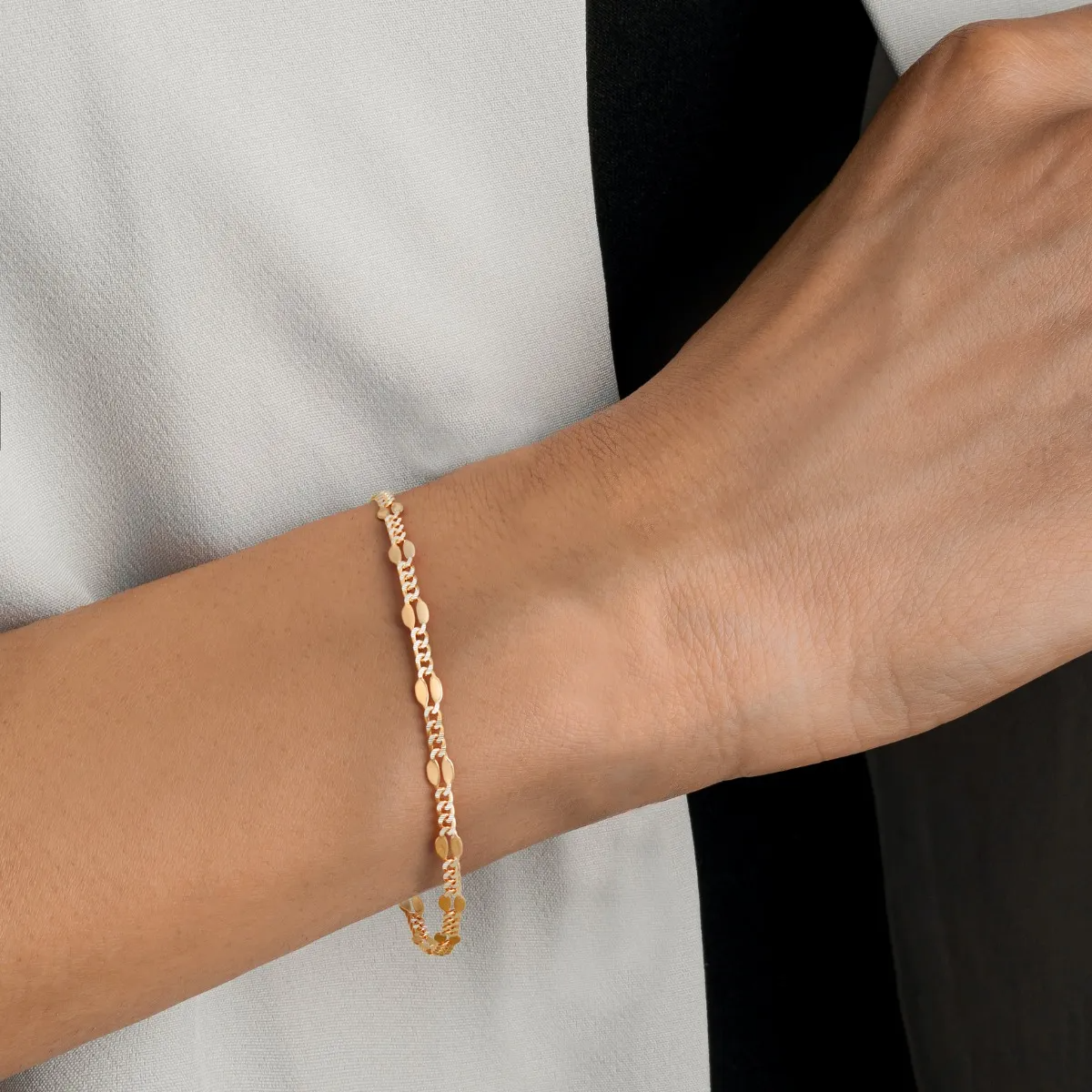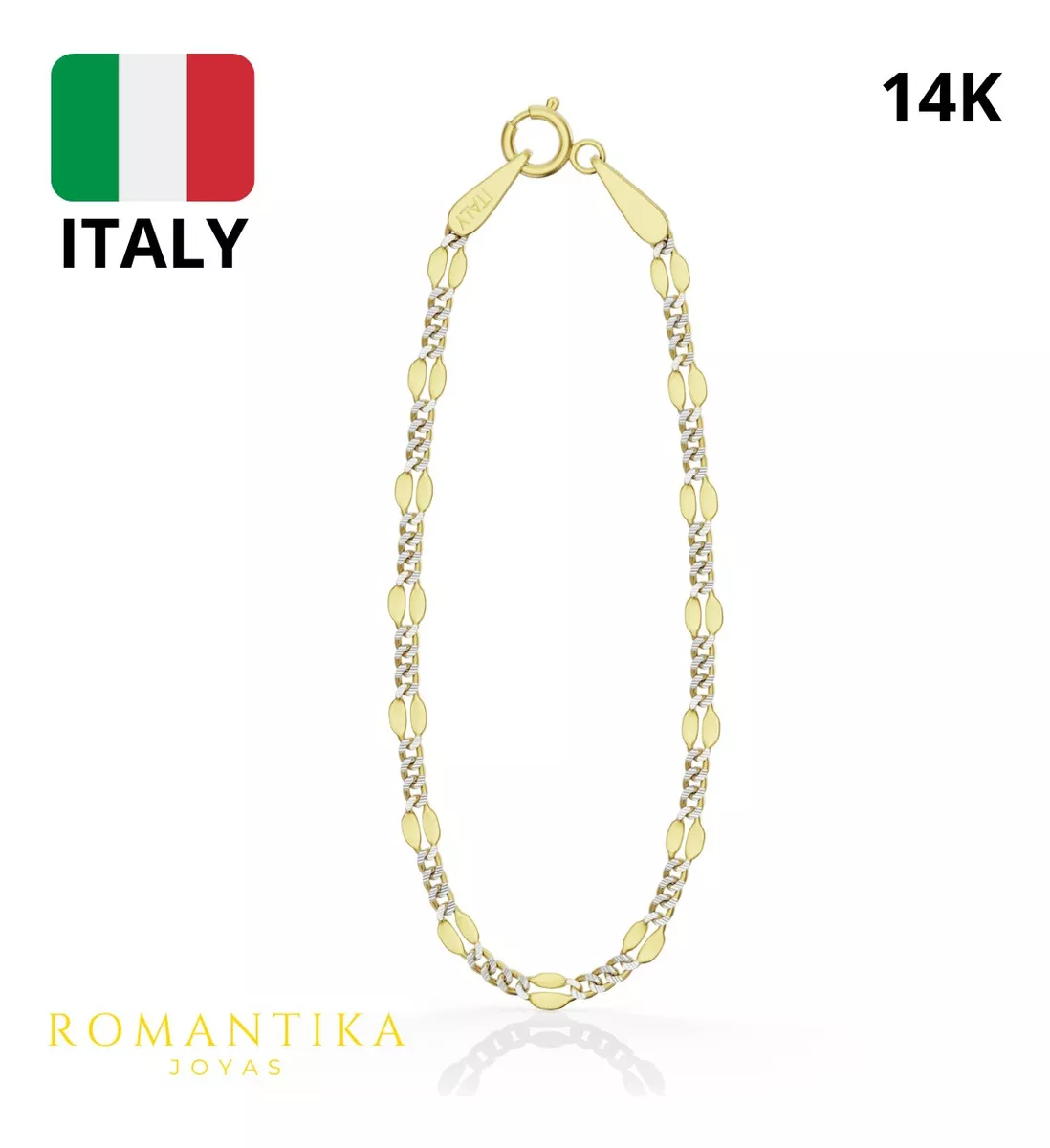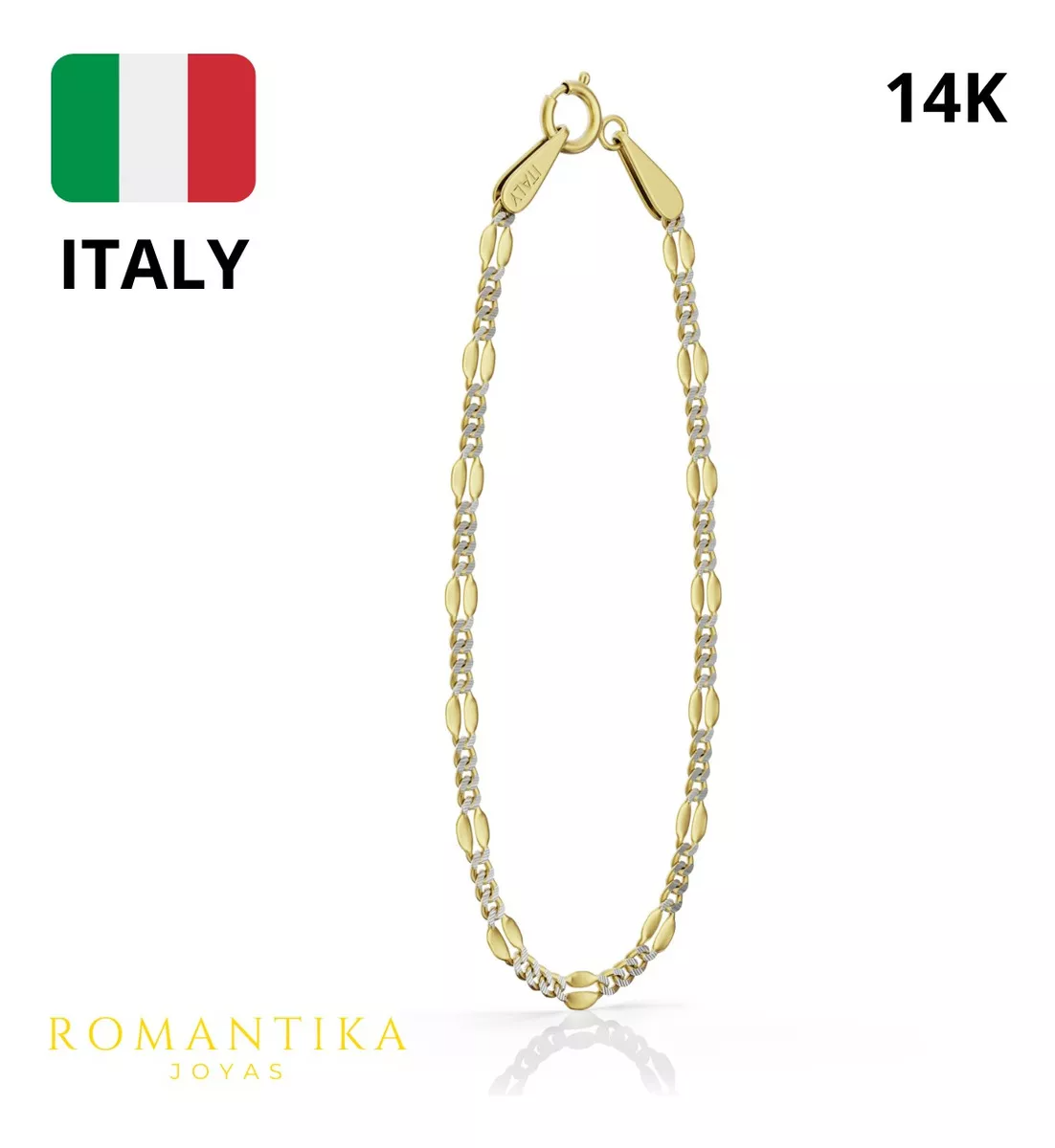 Ver todas las características DescripciónModelo: Pulsera Oro 14k Figaro Remache Cubana Diamantada 3mm 18cm |
