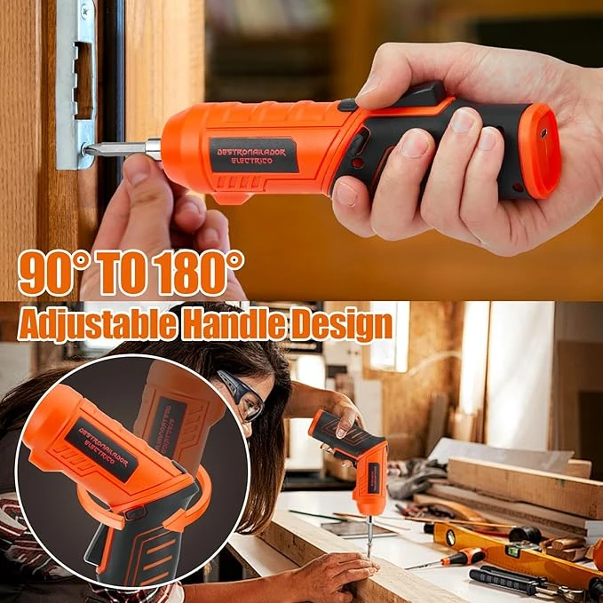 - Práctico destornillador eléctrico:El destornillador tiene un mecanismo fácil de avance/retroceso, mango giratorio y luz LED para iluminar las áreas de trabajo. La está equipada con protección contra sobrecarga/sobredescarga/sobrecalentamiento. Con una potencia de 300 rpm, es una buena ayuda para el trabajo.