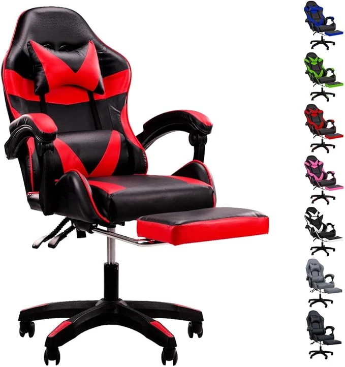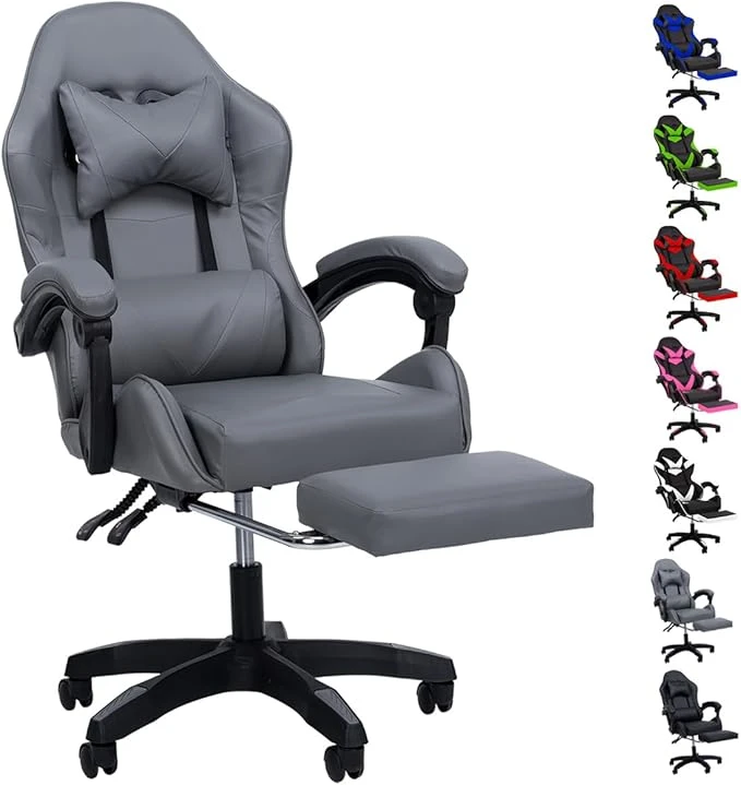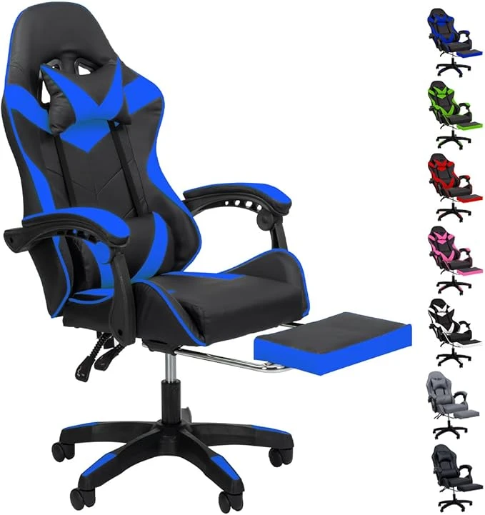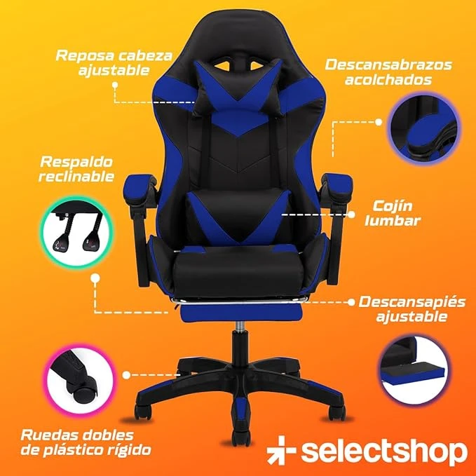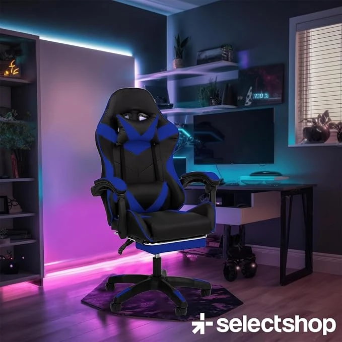SELECTSHOP Silla Gamer Reclinable con Reposa Pies Silla Gaming Ergonómica Ajustable Silla Gamer Comoda Reclinable hasta 90° Resistente PO3C8