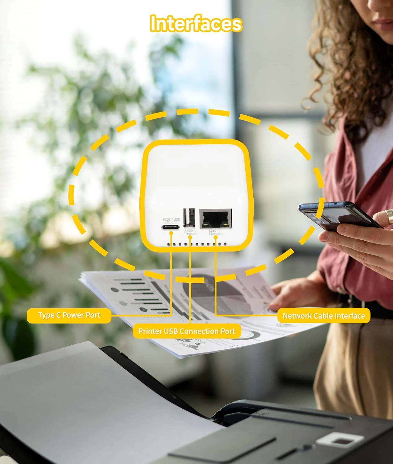 Gugxiom Servidor de Impresión USB, Servidor de Impresión LAN Compartible, Servidor de Impresión USB 2.0 para XP para Android para 3.4 para iOS, Máximo 256 GB