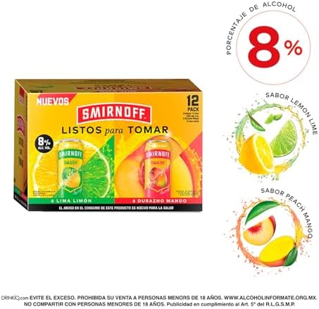 Smirnoff Smash Durazno-Mango y Lima- Limón Bebida Alchólica 12 Pack