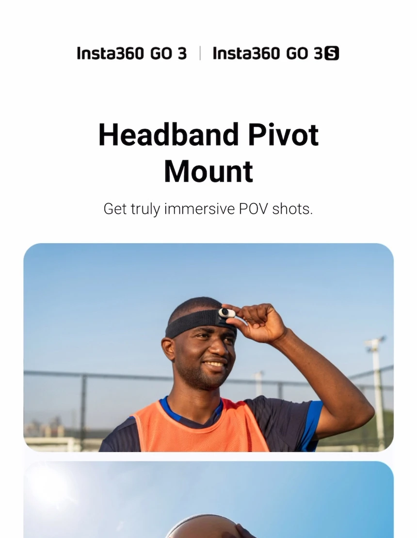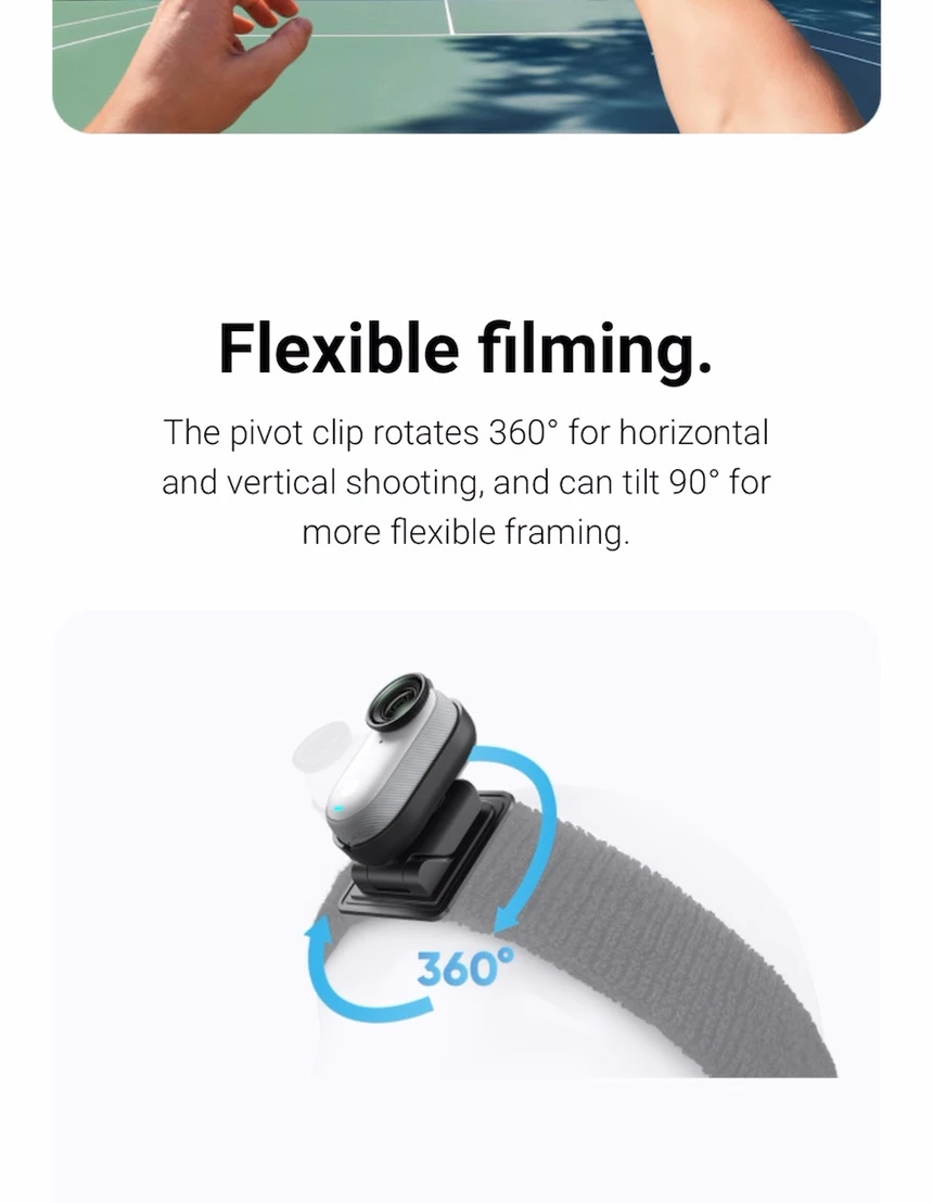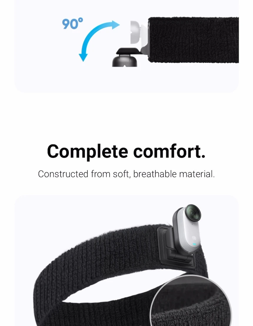 Material suave y ajuste seguro : La banda de cabeza de Insta360 ofrece comodidad y protección para la cámara. Kit de accesorios para Insta360 GO:Completo de accesorios para maximizar la funcionalidad de la cámara en aventuras. Rango de inclinación de 90° para personalización:Ampliar el alcance de disparos con la banda de cabeza de 90 ° inclinación. Ajuste cómodo con banda de cabeza:Diseño ergonómico que asegura el Insta360 GO 3S/GO 3 durante actividades intensas. Insta360 Go 3s Headband|Insta360 Go 3 Headband|Clip giratorio 360° para Insta360 GO 3S/GO 3:Rotar la cámara de 0 a 360 ° para capturas verticales y horizontales sin esfuerzo. |