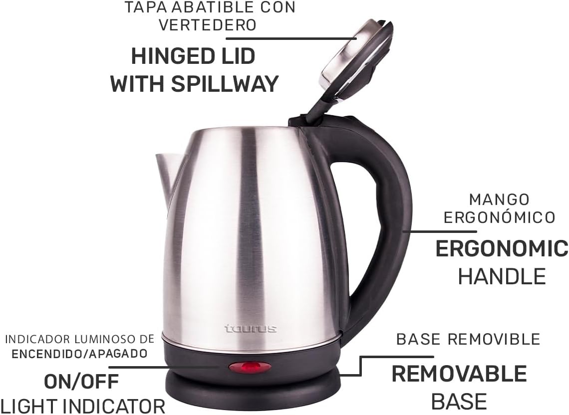 Taurus CARONTE | Hervidor Eléctrico | Jarra Inalámbrica | 2 Litros | 1000 W | Ac