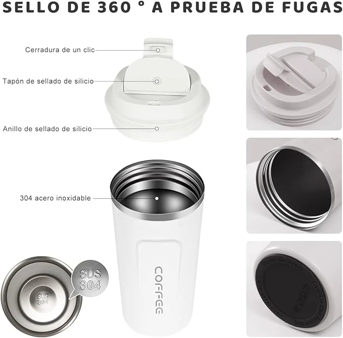 ☕【Material de Acero Inoxidable 304】La pared interna de la taza termo está hecha de material de acero inoxidable 304, lo que hace que la taza termo sea más duradera. Y el acero inoxidable apto para alimentos es más seguro de usar.