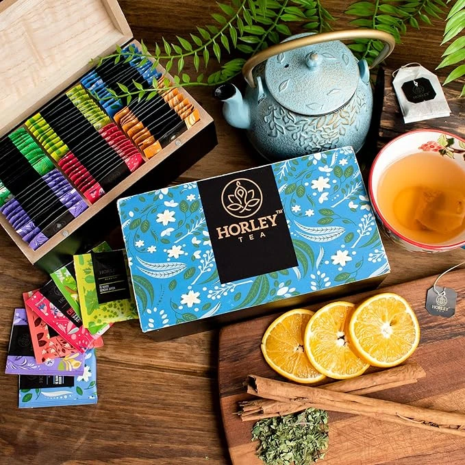 Té Horley, Caja de Madera Varios Sabores, 655 gramos