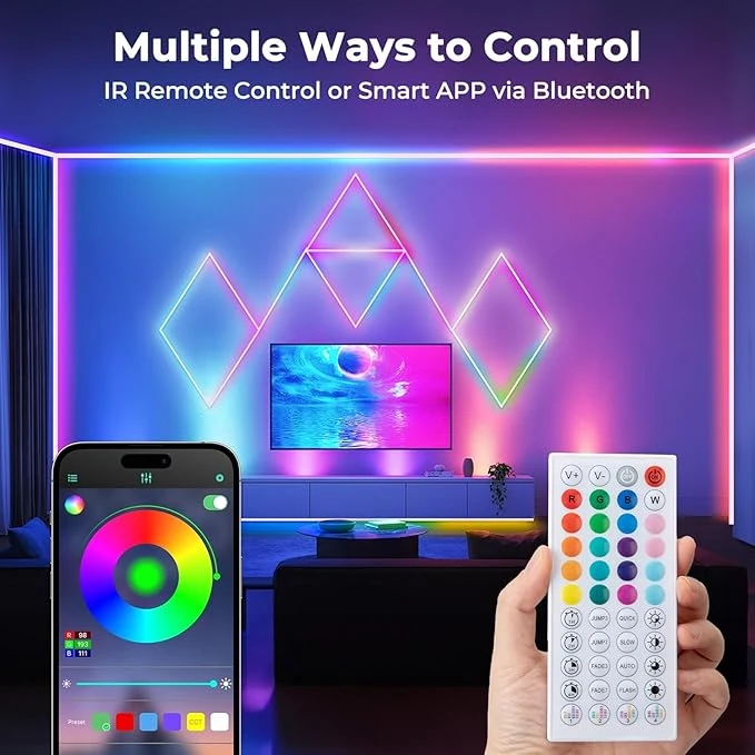 Luces de tira de LED Bluetooth: esta barra de luces LED decorativas se puede controlar mediante Bluetooth y es compatible con una gran variedad de teléfonos móviles.App es fácil de usar, puede cambiar el color y los efectos de iluminación en su teléfono inteligente para que coincida con su escena!