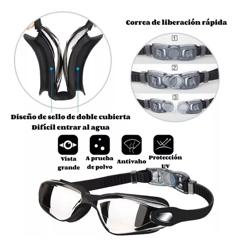 1*Juego de gafas de natación (incluye gafas, gorro de natación, pinza para la nariz y tapones para los oídos)