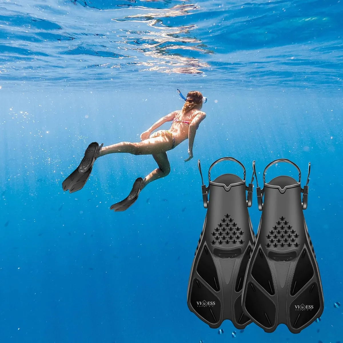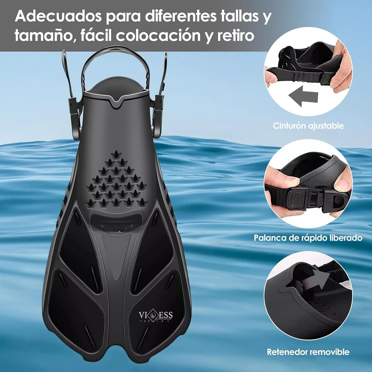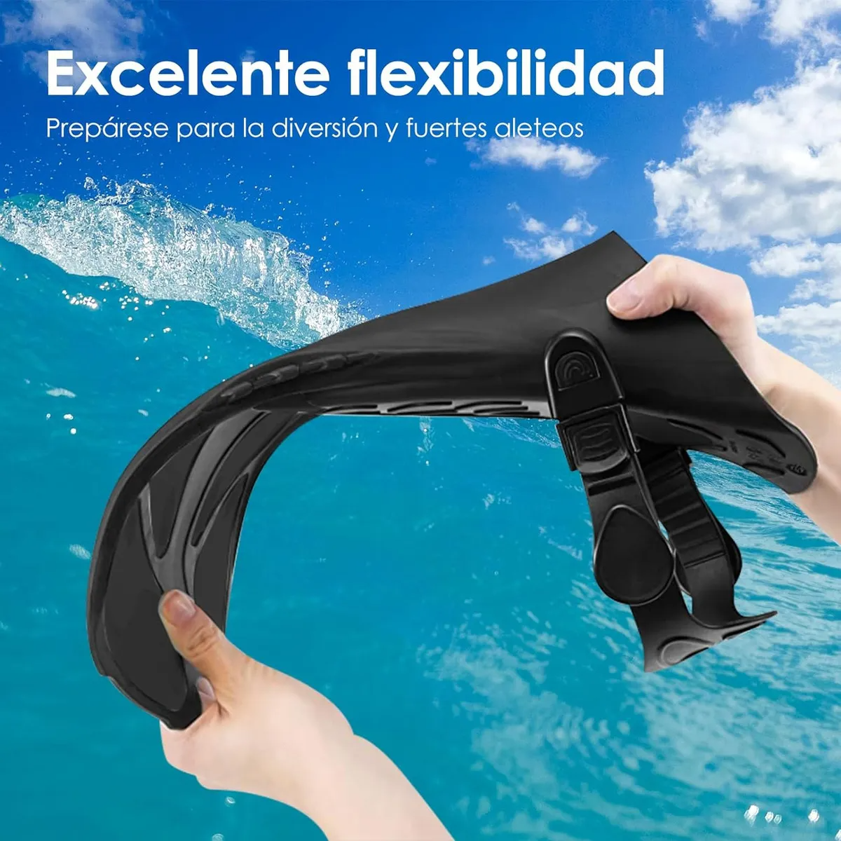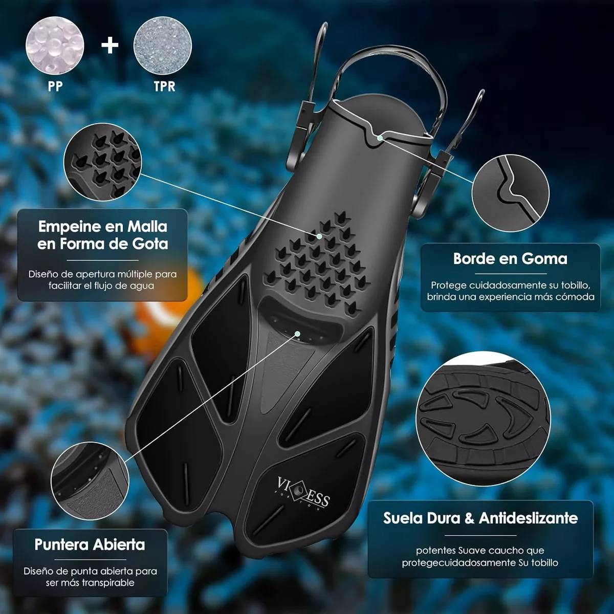 Ver todas las características DescripciónGran calidad: Este par de aletas está fabricado con caucho elástico termoplástico de alta calidad (TPR) y polipropileno, por lo que son suaves, flexibles y duraderas, además le brindan comodidad a sus pies para que pueda disfrutar de sus aventuras. |