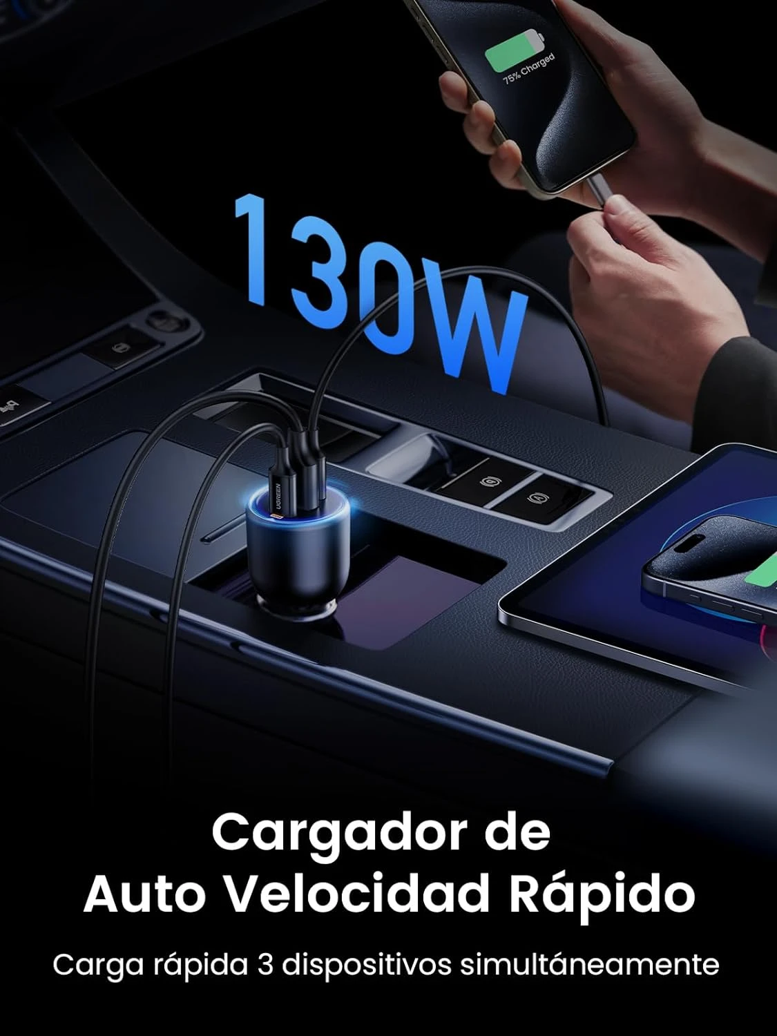 - Cargador de Coche de Alta Potencia de 130W: UGREEN 130W cargador de coche usb c es compatible con casi todos los dispositivos, desde computadoras portátiles hasta teléfonos inteligentes, GPS y otros dispositivos. Con este cargador de automóvil USB-C de alta potencia, puede convertir su coche en una oficina móvil, lo que hace que su viaje sea más eficiente