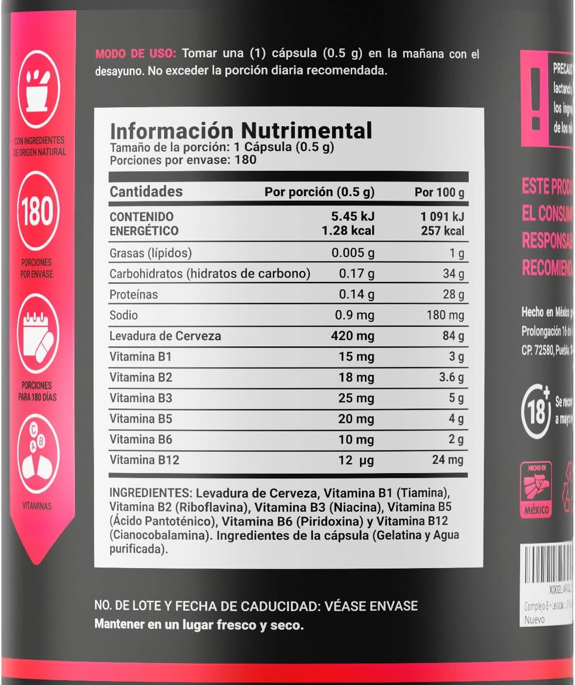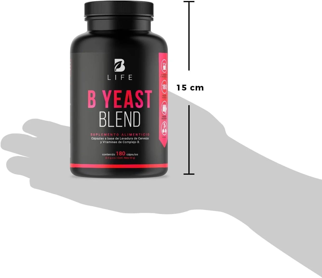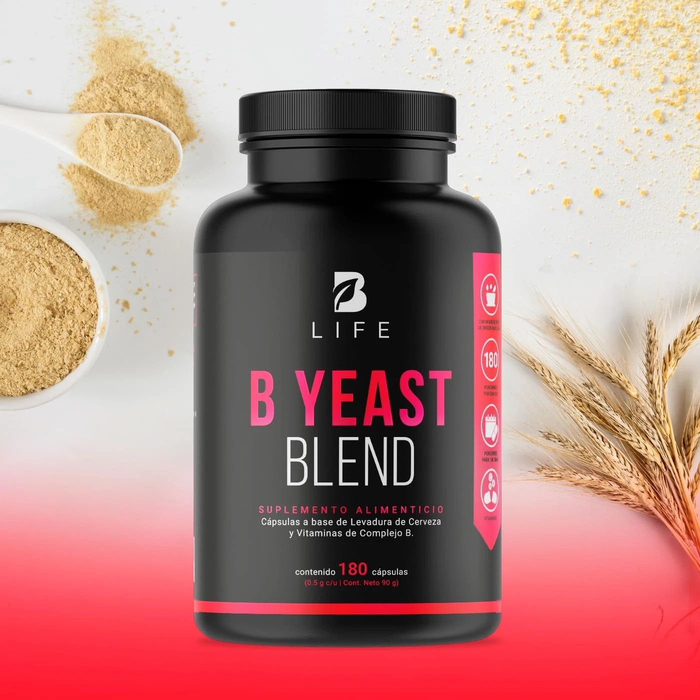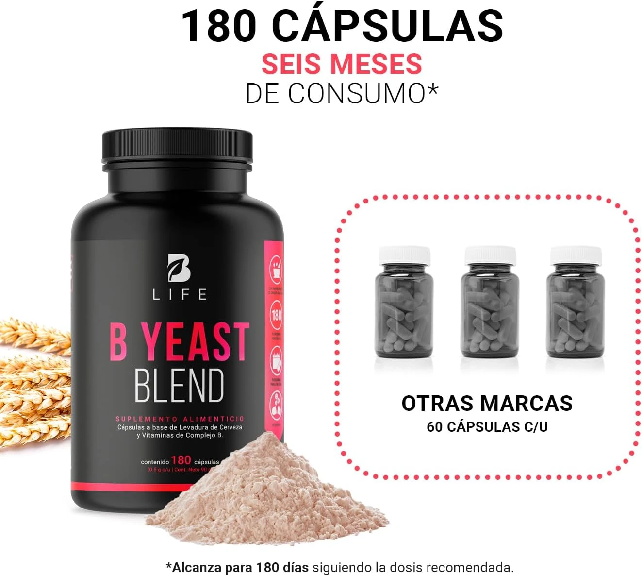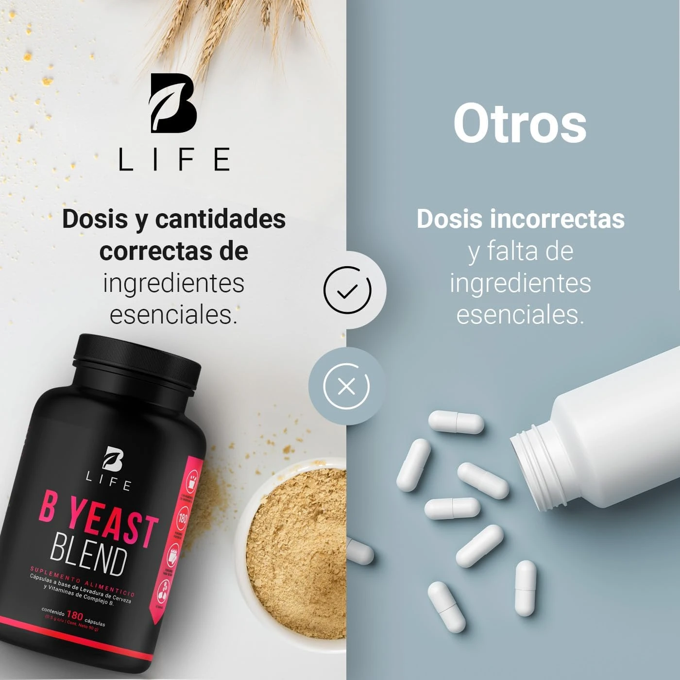 B Life Company Complejo B. Levadura de Cerveza y Vitaminas B1, B2, B3, B5, B6, B12. Ingredientes Naturales con 180 cápsulas de 500 mg. B Yeast Blend