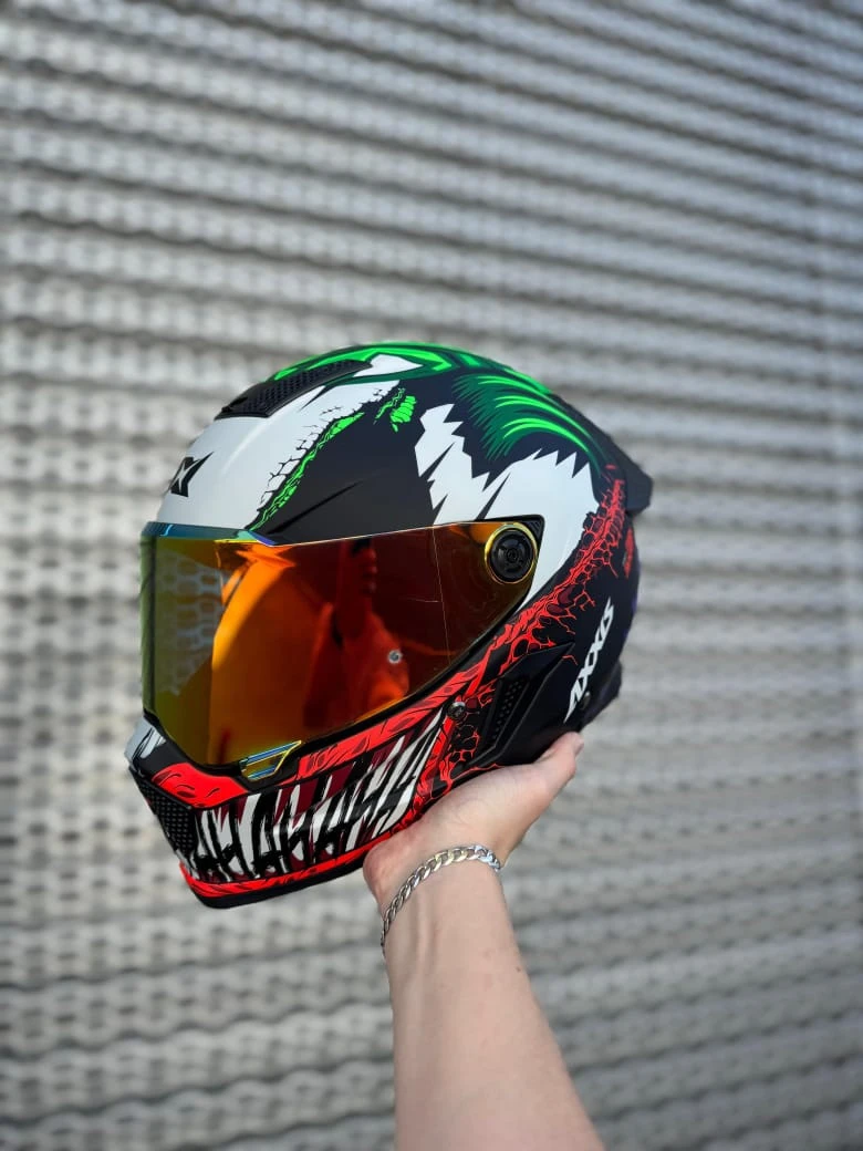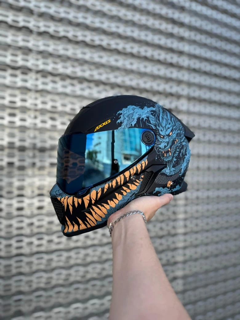 Axxis, tope de gama de Axxis, cuenta con diseño deportivo, spoiler y difusor integrado, con diseño exclusivo, esponjas de excelente calidad con parte baja de cuero, cierre termo formado y ventilación excelente. Cuenta con visor extra extra y pinlock (anti empañarte) |