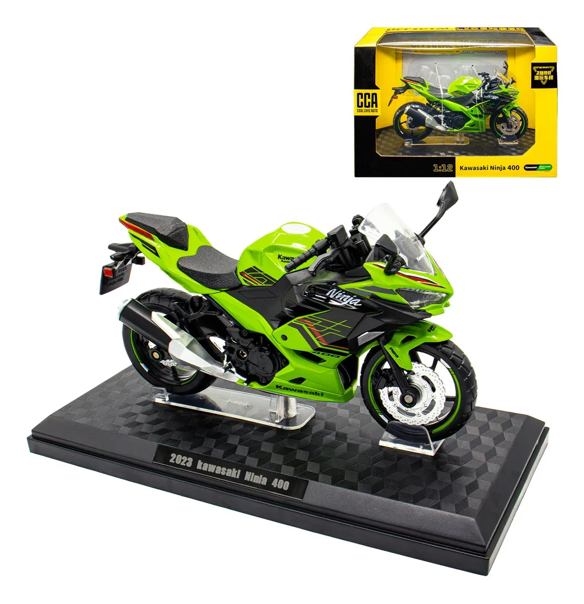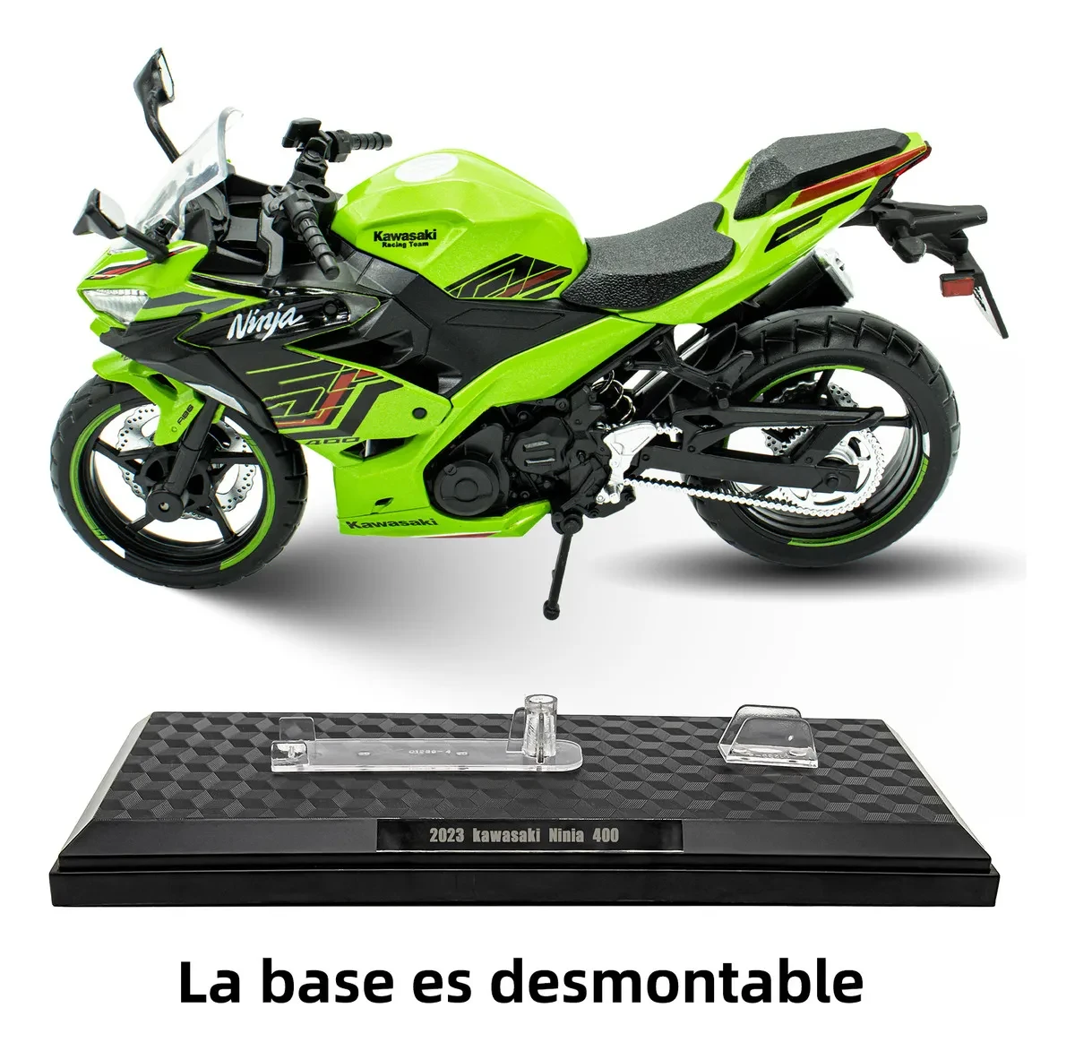 La Cca Kawasaki Ninja 400 Metal Motocicleta Con Base 1:12 en color verde es una pieza excepcional para los amantes de los vehículos a escala. Fabricada con una combinación de metal y plástico, esta motocicleta destaca por su atención al detalle y su diseño fiel al modelo real. Con una escala de 1:12, es ideal para coleccionistas y entusiastas que buscan añadir un toque auténtico a su colección. Recomendada para niños a partir de 3 años, esta motocicleta no solo es un objeto decorativo, sino también una excelente opción para fomentar la imaginación y el juego creativo. Su diseño robusto y duradero asegura que pueda ser disfrutada por años, convirtiéndola en un artículo coleccionable que no tiene fecha de caducidad. La serie Kawasaki es reconocida por su calidad y rendimiento, y este modelo 2023 de la Ninja 400 no es la excepción. Aunque no cuenta con apertura de puertas, su estética y acabado hacen que cada detalle cuente, brindando una experiencia visual única para quienes la aprecian. Ideal para exhibir en estanterías o como parte de un diorama, esta motocicleta es un regalo perfecto para cualquier aficionado a las motos o coleccionista de vehículos a escala. No pierdas la oportunidad de añadir esta impresionante pieza a tu colección. |