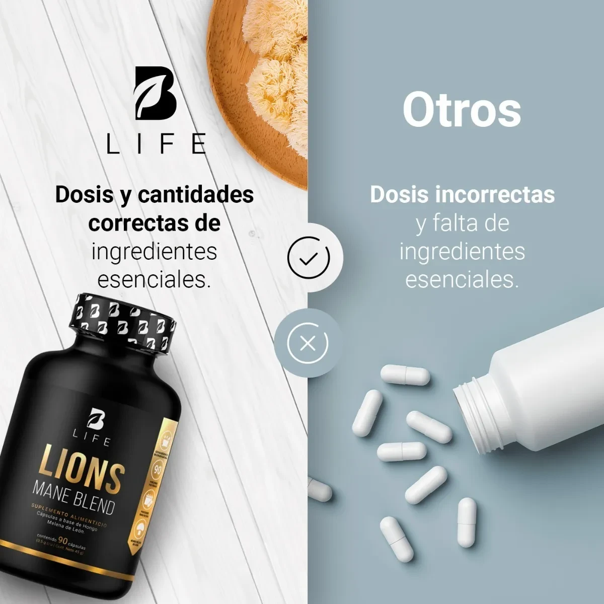 Descripción¡Eleva tu bienestar mental con Lions Mane Blend B Life! Nuestra fórmula exclusiva contiene una concentración máxima de 1000 mg de Hongo Melena de León por porción, proporcionando compuestos antioxidantes claves para tu vitalidad. Contiene 90 cápsulas. Más de 1 mes de consumo por envase. Ingredientes naturales de alta calidad. Consumir 2 cápsulas al día (1 g) preferiblemente con los alimentos (dosis sugerida). Este producto no es un medicamento, su consumo es responsabilidad de quien lo recomienda y usa. Aviso legal • Este producto es un suplemento dietario, no es un medicamento. Suplementa dietas insuficientes. Consulte a su médico y/o farmacéutico. |