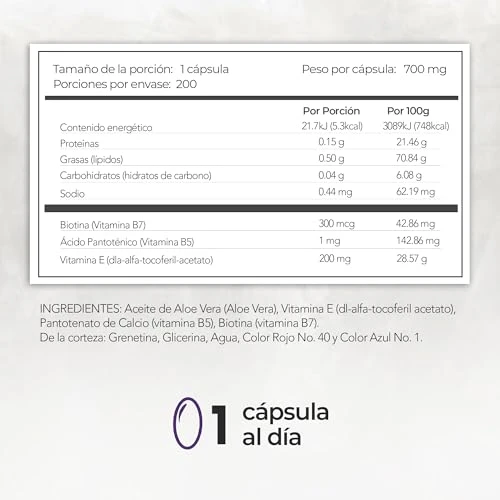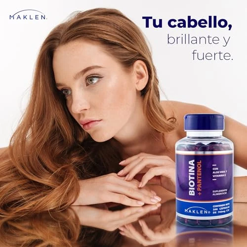 Maklen Biotina con Pantenol y Vitamina E - Suplemento para Cabello, Piel y Uñas - 200 Capsulas Softgels de 700 mg