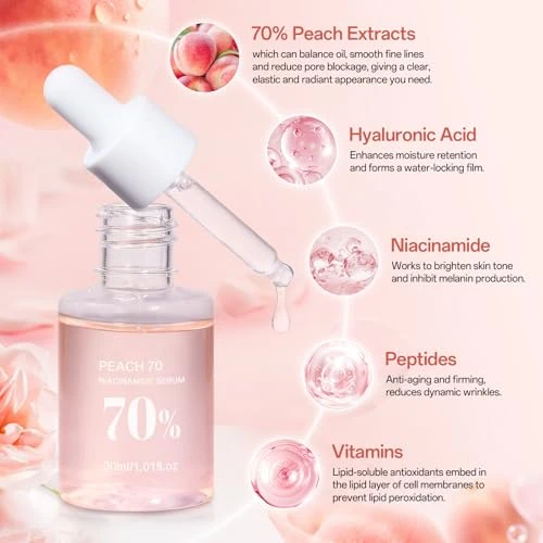 Peach 70 - Suero de niacinamida, suero corrector de manchas oscuras para hidratación facial, suero facial para piel grasa, limpieza diaria